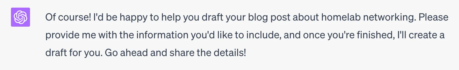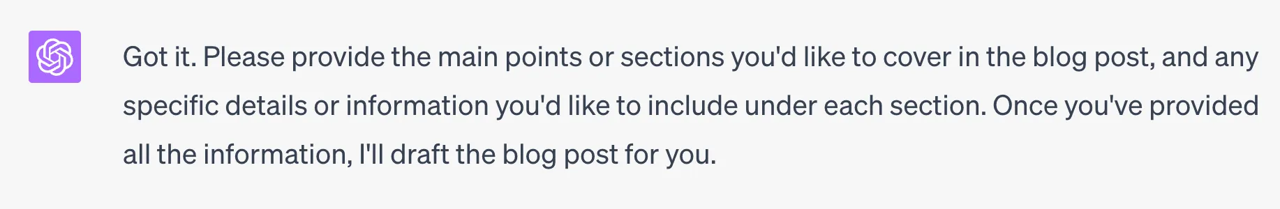 ChatGPT patiently awaited all the necessary information before the robot crafted the blog post draft.