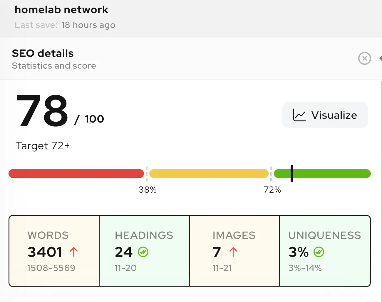 I conducted the Keyword research with Writzerzen and decided, based on the recommendation for the focus keyword “homelab network.”