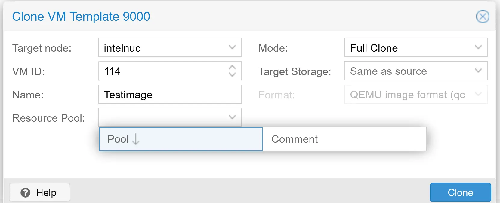 qm create $VMID --memory 2048 --cores 2 --name "$NAME" --net0 virtio,bridge=vmbr0