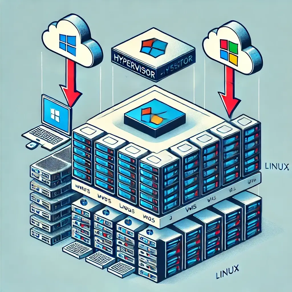 - Type 1 (Bare-Metal Hypervisors): Run directly on the hardware, offering better performance and efficiency. Examples: VMware ESXi, Proxmox VE, Microsoft Hyper-V.