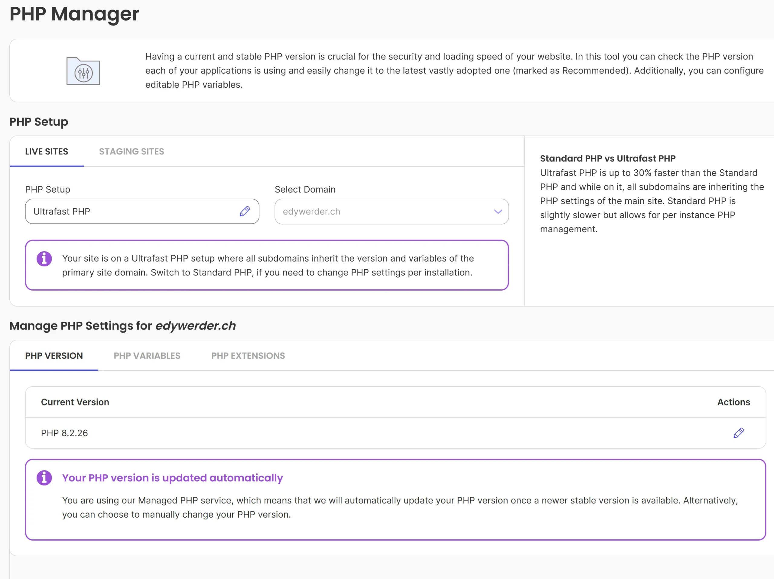 Ultrafast PHP is SiteGround’s specialized version of PHP. It automates common tasks and processes to ensure your website performs at its peak.